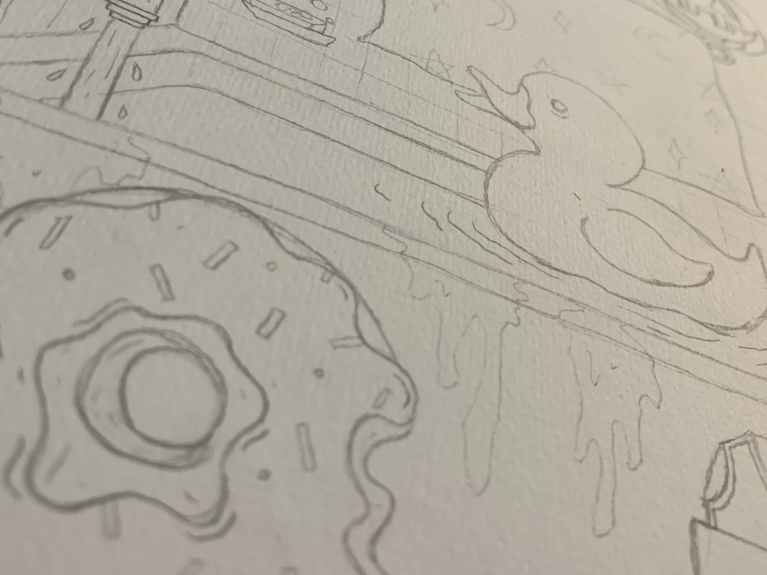 "Indoor Swimming" Digital and traditional media rendering 9x12 200gsm Watercolor Paper, Posca Markers.